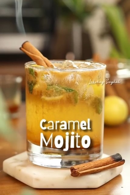 Caramel Mojito (Caramel syrup, mint leaves, sugar and lemon juice)