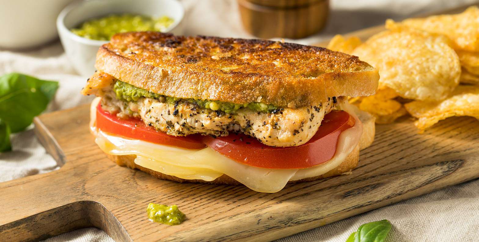 Pesto sauce, mozzarella cheese, chicken and lettuce