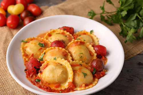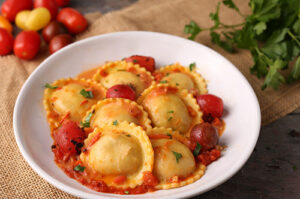 Homemade ravioli filled with spinach and ricota cheese